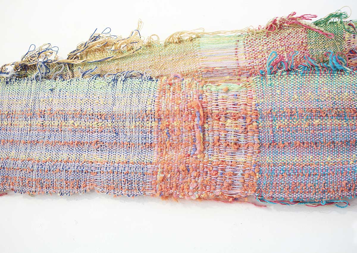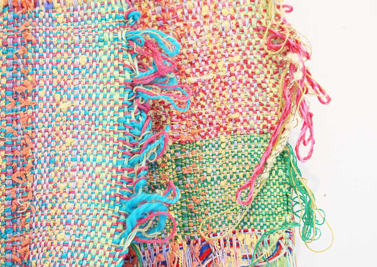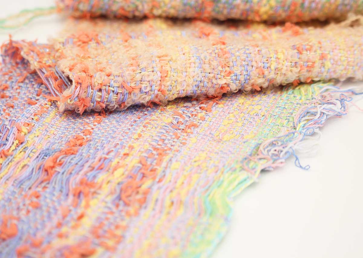 「これは○○さんにあげる!」と、毎回出来上がった反物を誰かにプレゼントすることを楽しみにしながら織っている。 時には仲間に囲まれて笑いながら、また時には織り機が壊れてしまうぐらいの勢いで怒りながら織り続ける。織っている時のパワーは本当に凄い。 出来上がった安藤さんの反物を見ていると、織っている時の感情が凝縮されたように伝わってくる。