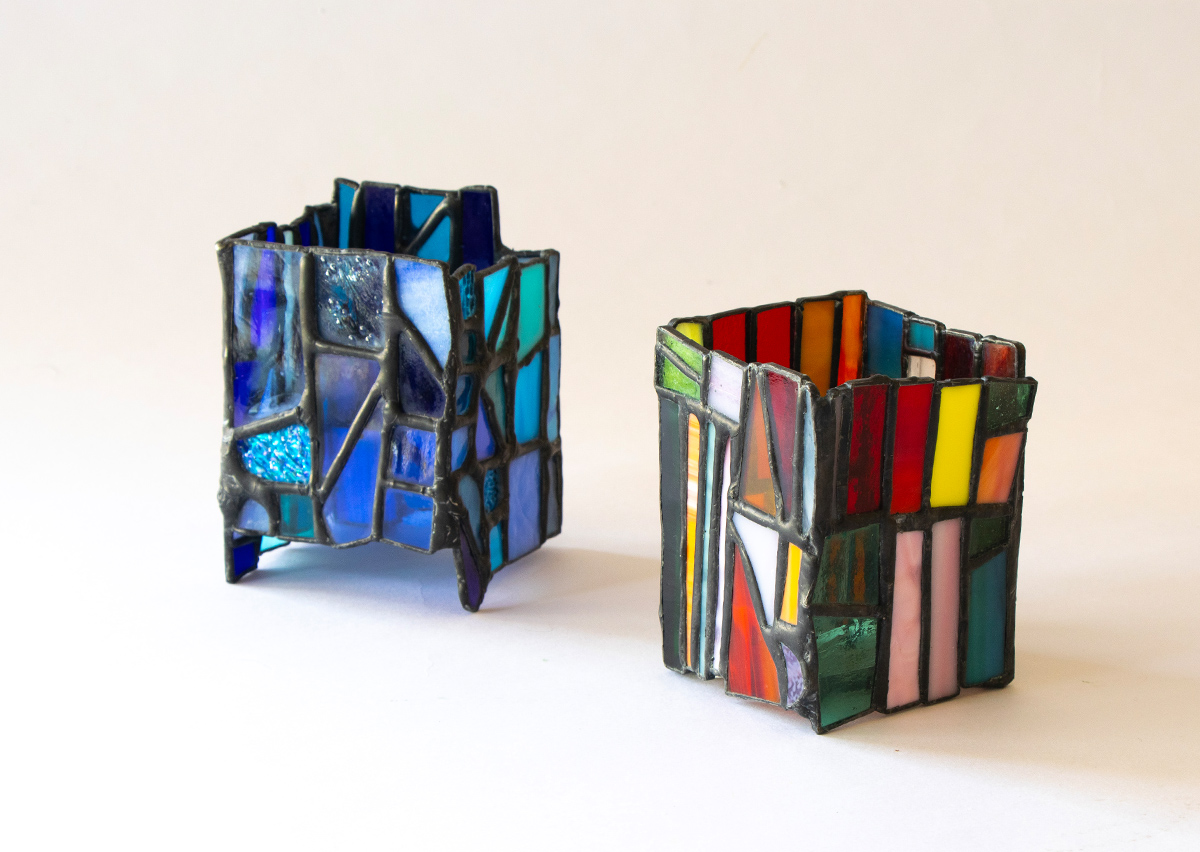まるでパズルのようにガラスとガラスを組み合わせて作品を作っていく。