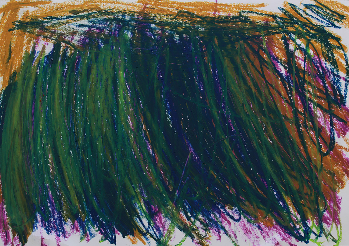 表現活動は始めたばかりで色々な画材を試してみたが、クレヨンの塗り心地が一番良い様子。