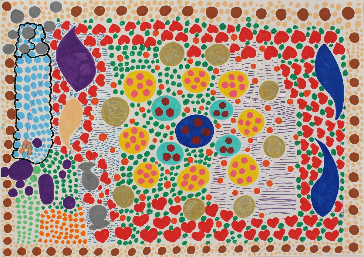 以前から絵を描くことが好きだった矢代さん。長年自宅で過ごしていたが、2019年から、みぬま福祉会に所属することとなり、ようやく自分の居場所を手に入れ、仕事として絵を描けるようになった。 日々、悩みや葛藤も多いが職員と一緒に乗り越えている。そんな矢代さんの作品には、自分の思いや願い、ストーリーがたくさん詰まっていて、観た人を矢代ワールドに誘ってくれる。