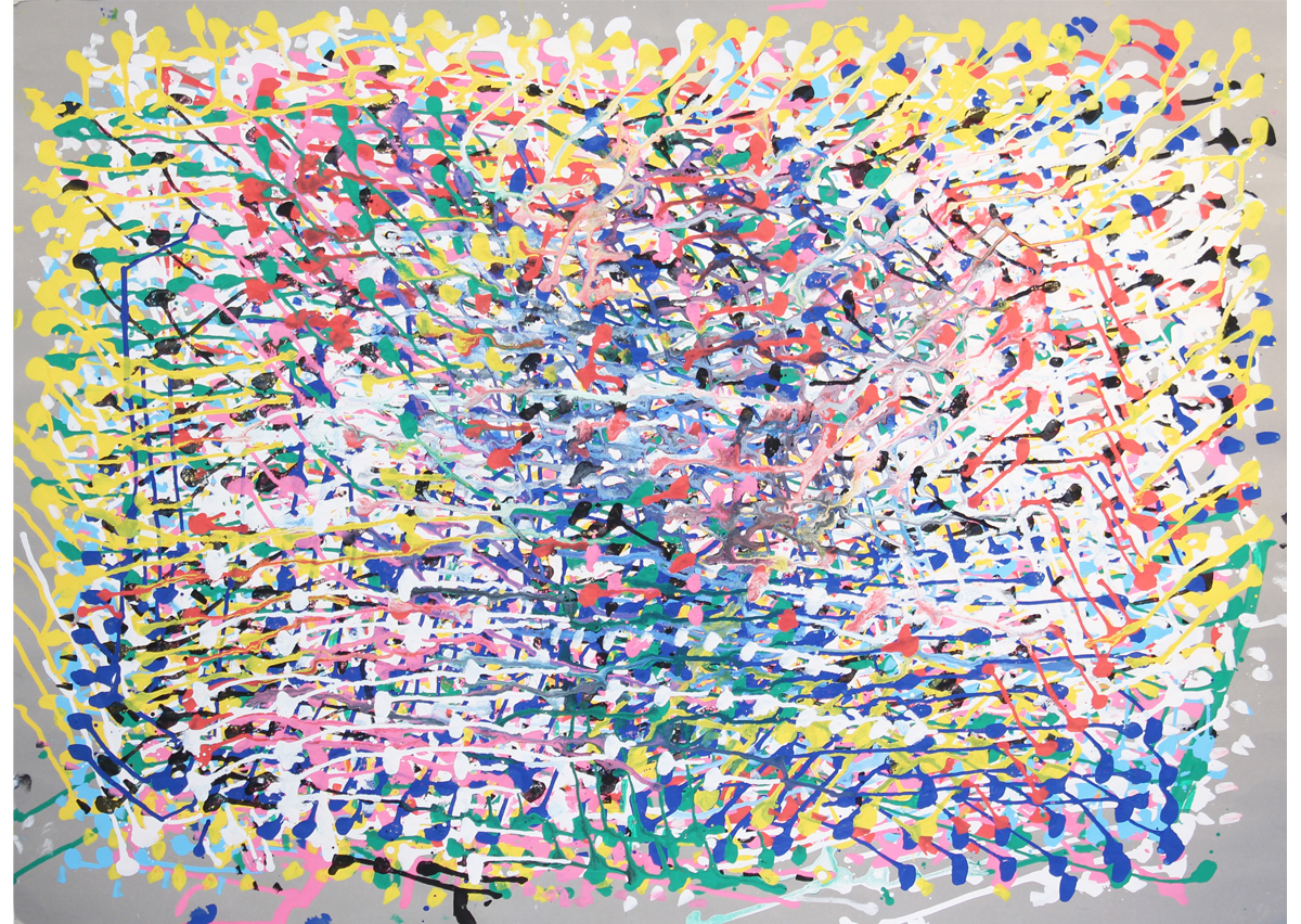 1つのところにじ~っとポスカを溜めて、次は作品ごと持ち上げてインクを垂らして、模様を創り出す。