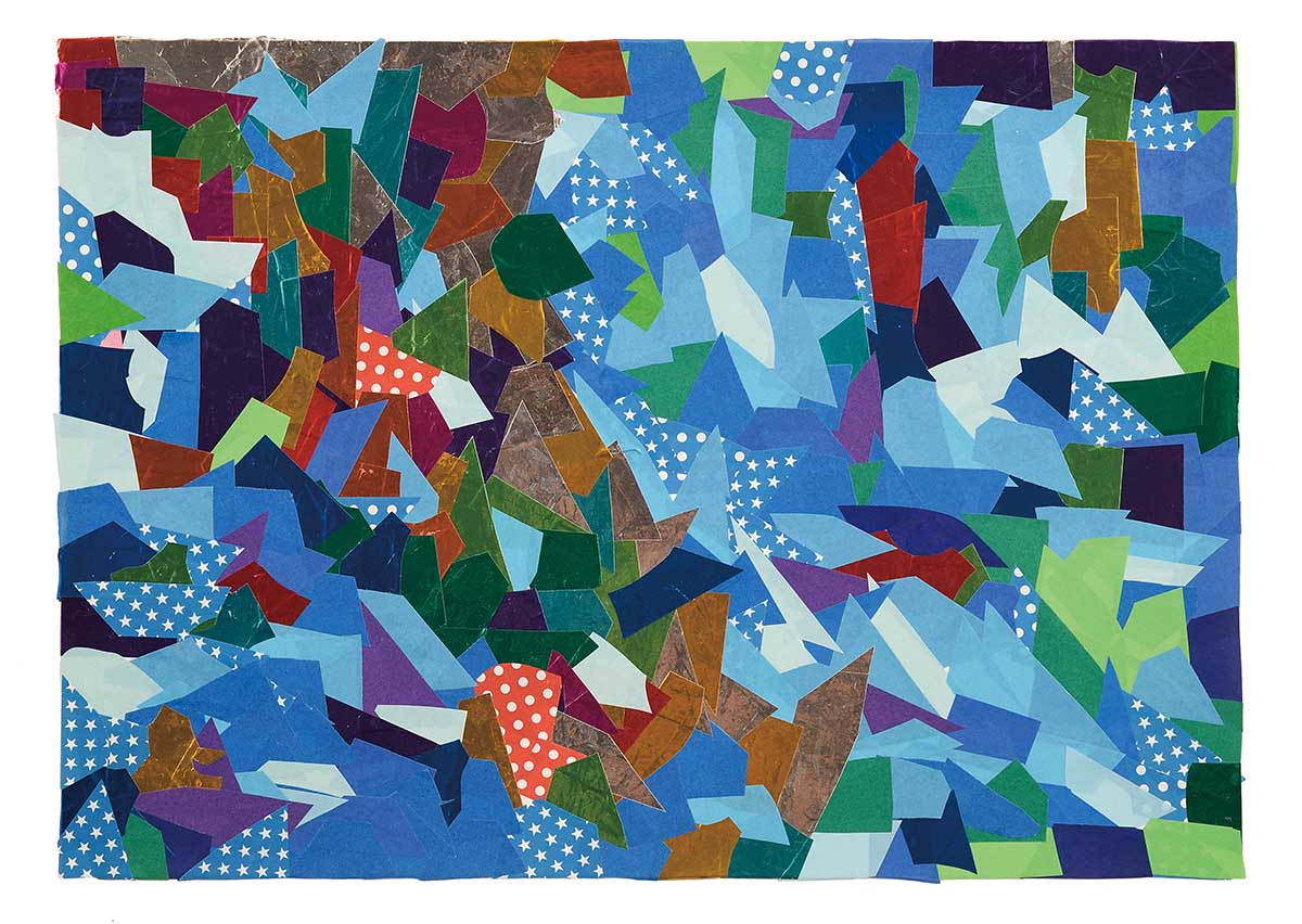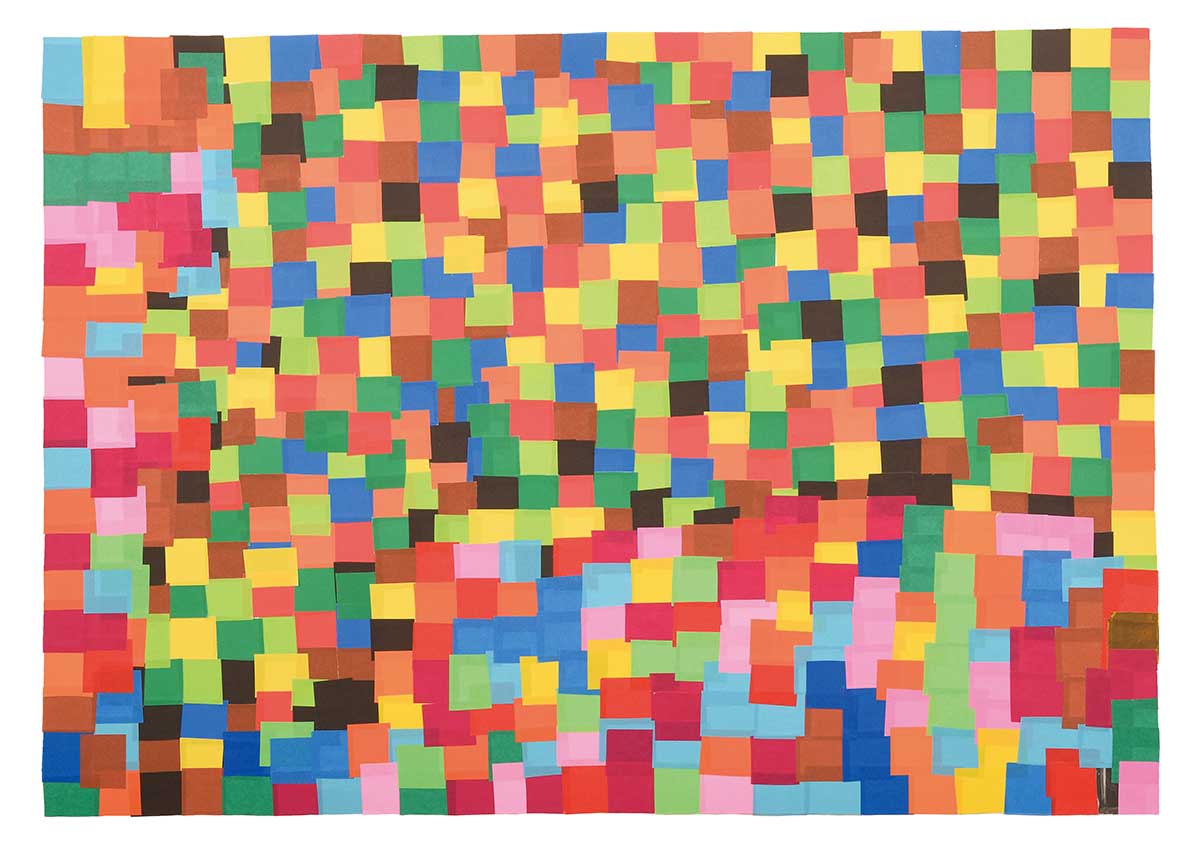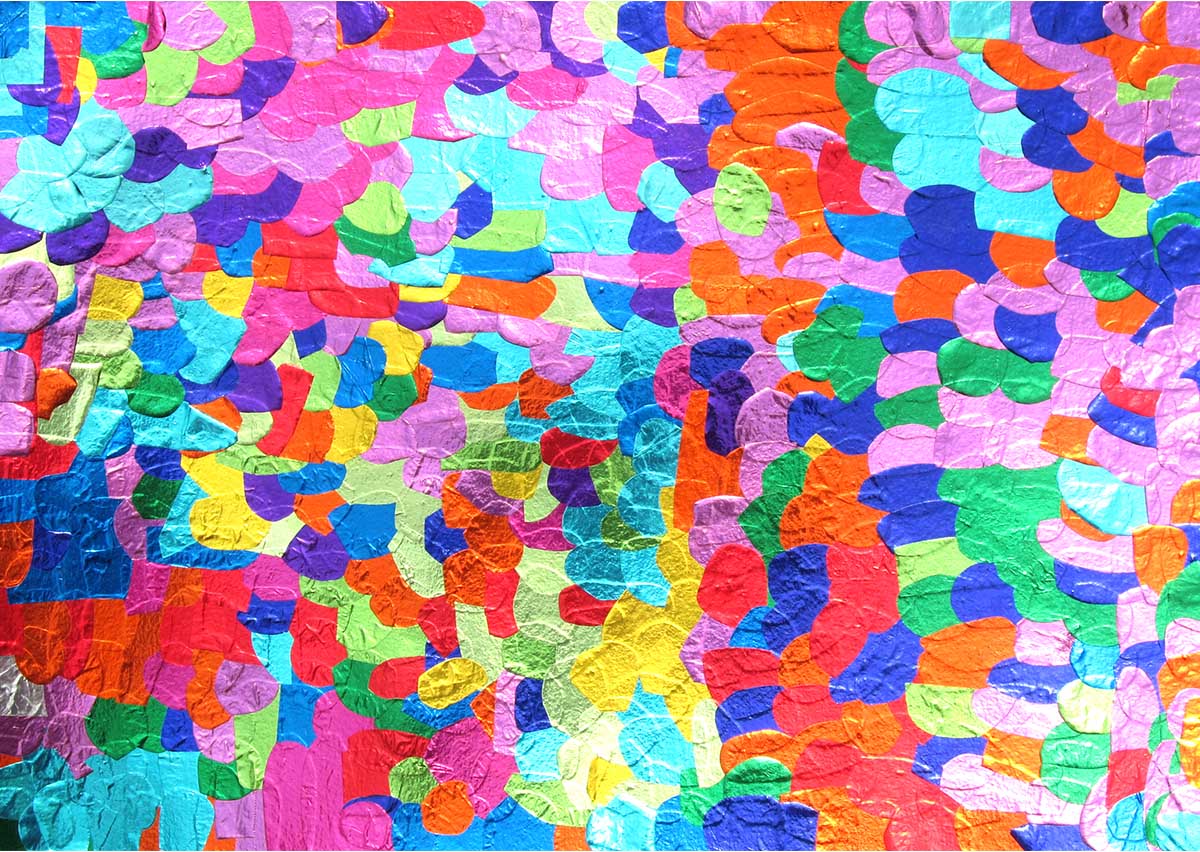 小さく切った折り紙を、丁寧に1枚ずつ貼り合わせる。