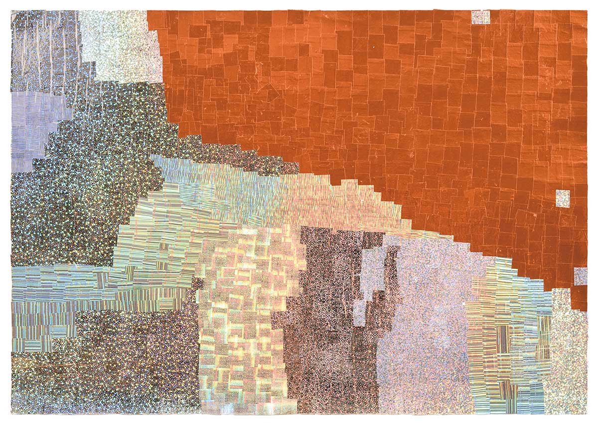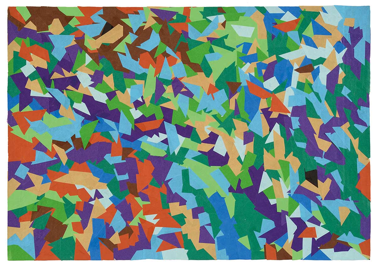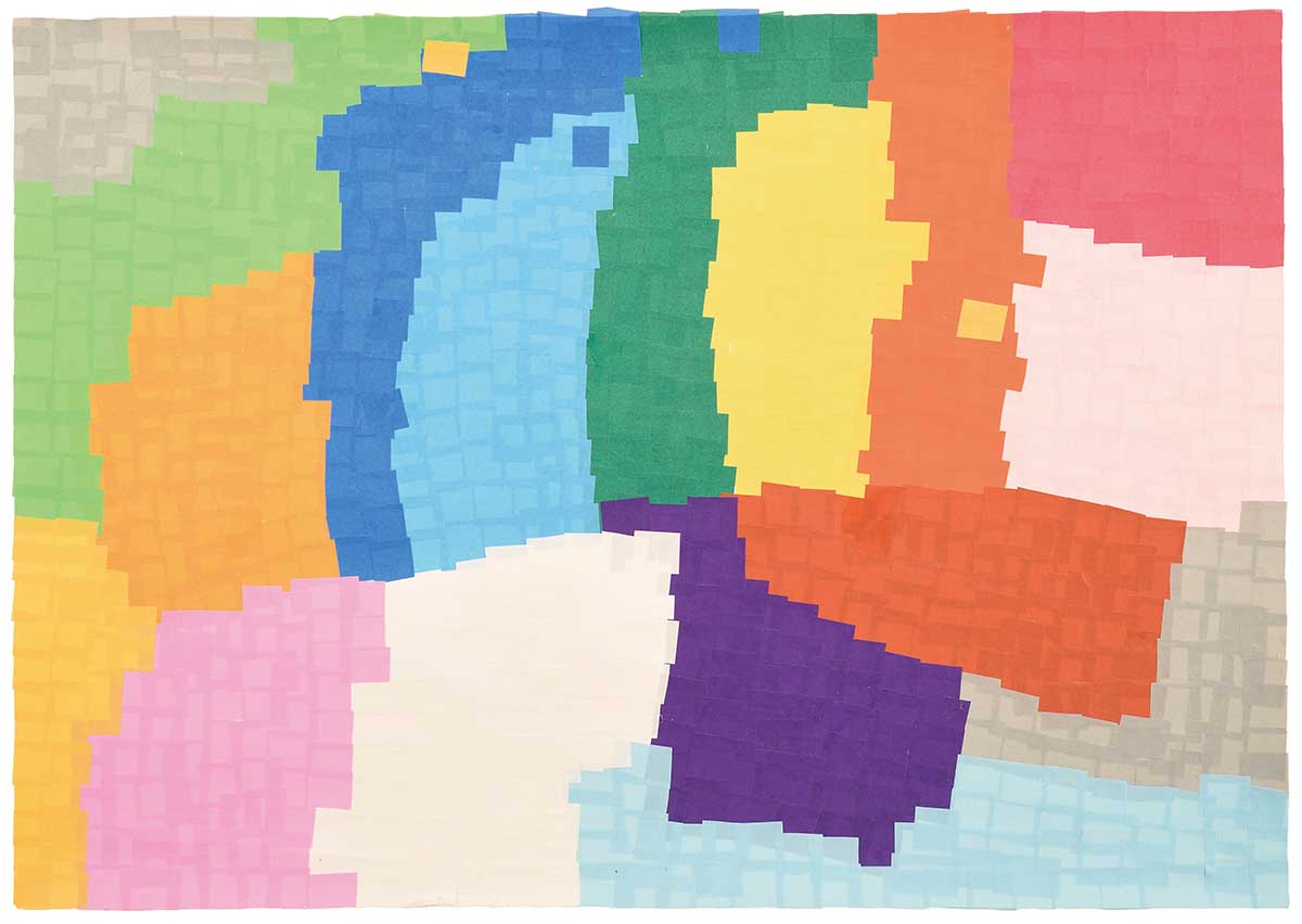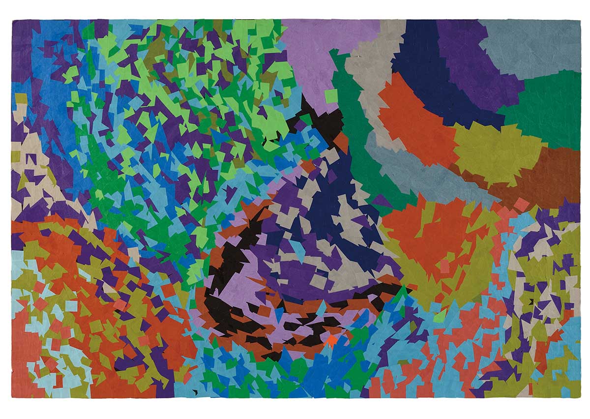 小さく切った折り紙を、丁寧に1枚ずつ貼り合わせる。