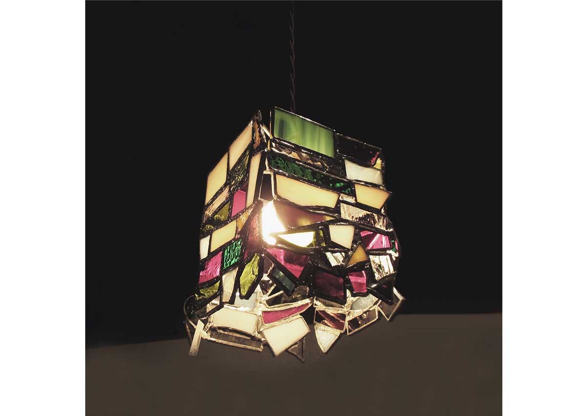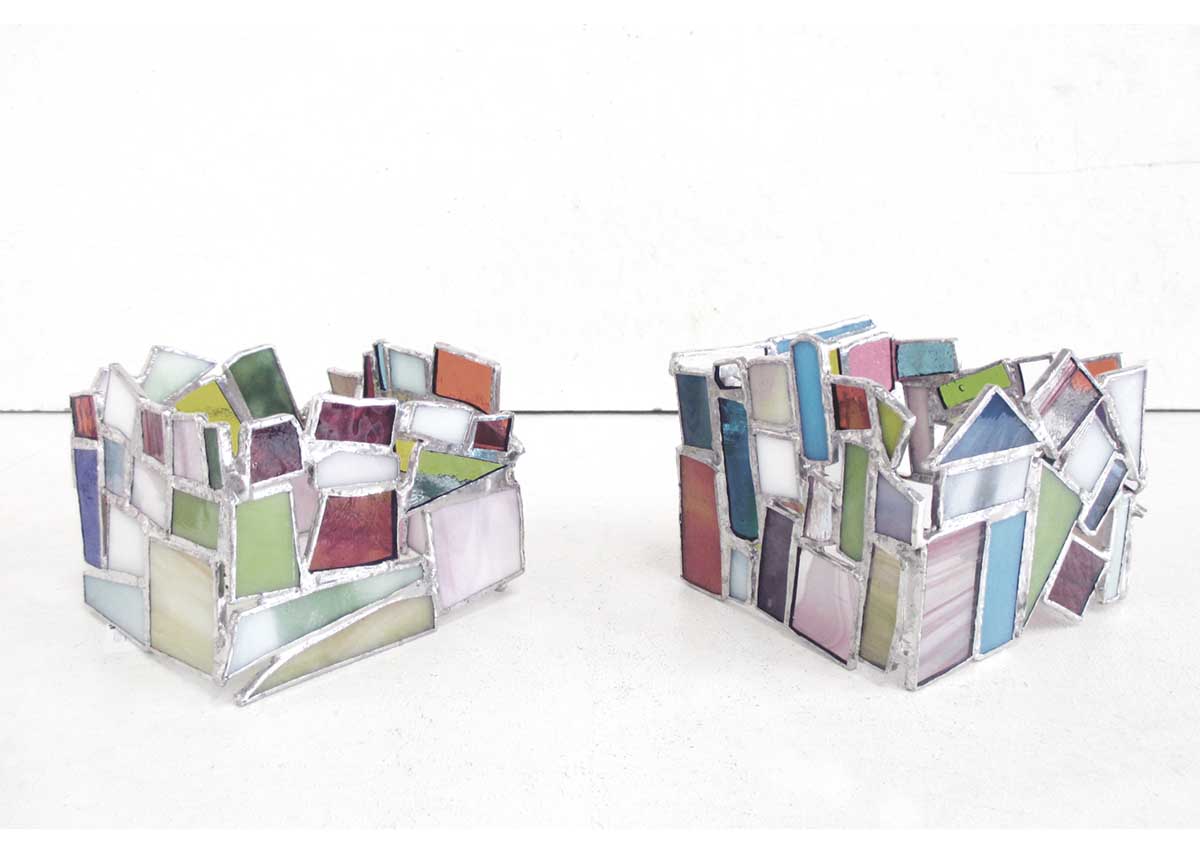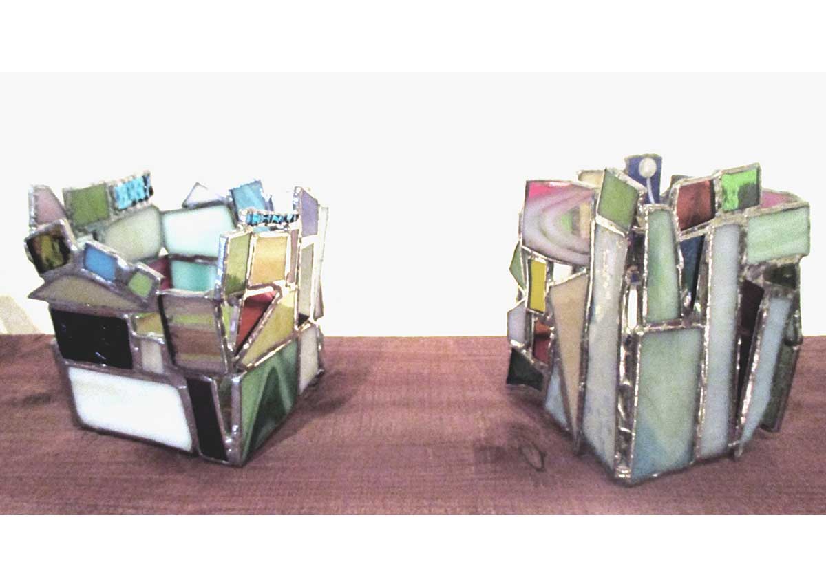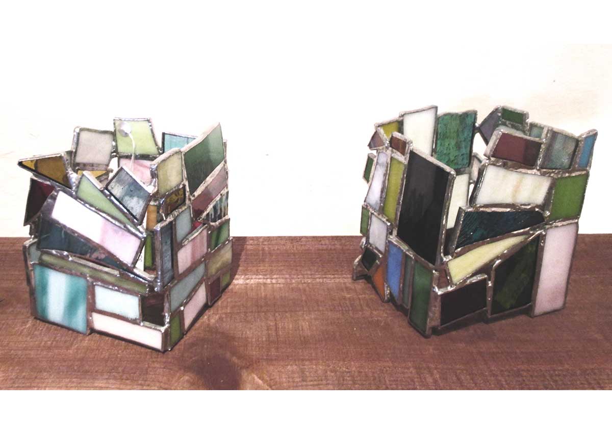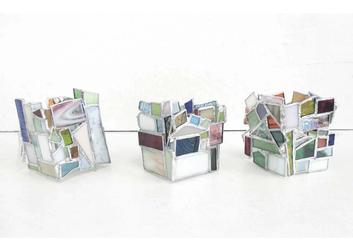 カラフルなガラスの組み合わせの中で、ハンダを柔らかく塗って空間(隙間)があるのが鴨志田さんの作品の魅力。