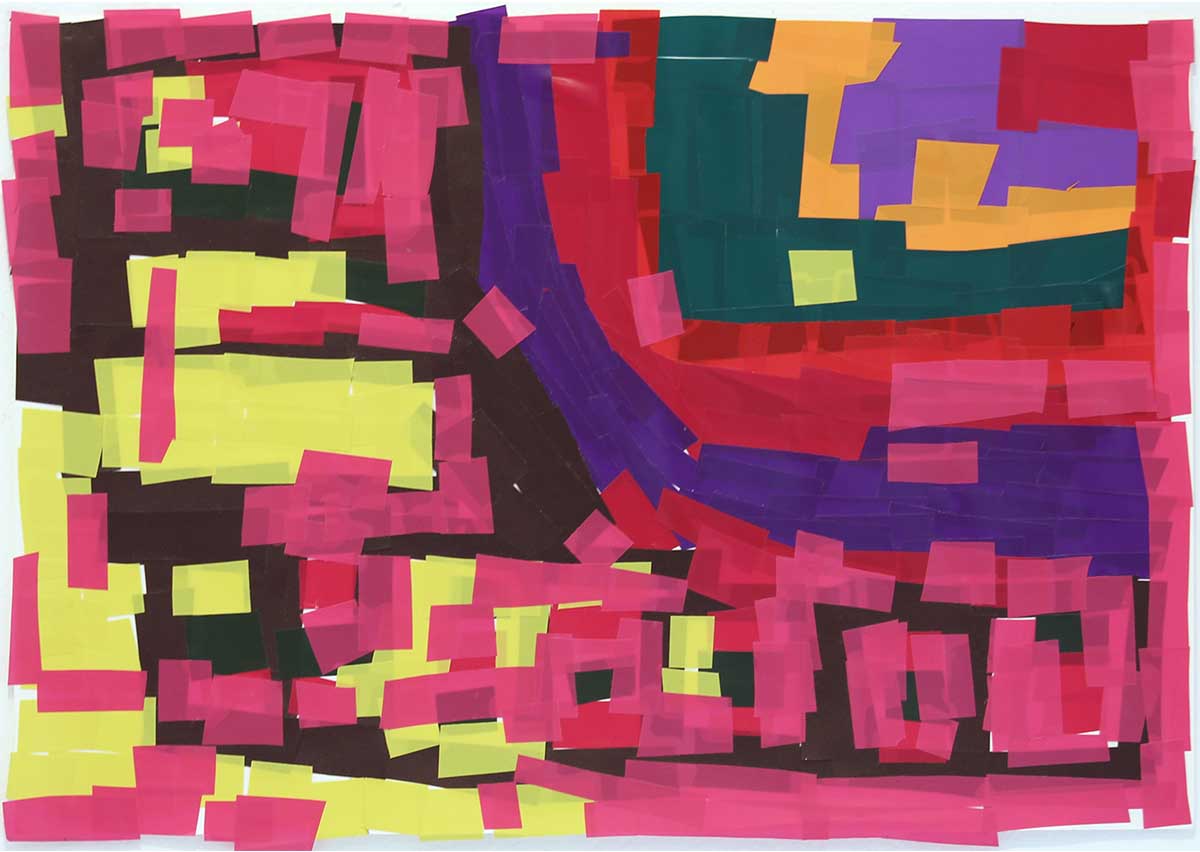 カッティングシートが幾重にも重なると立体的で、黒川さんの世界が広がっていく。