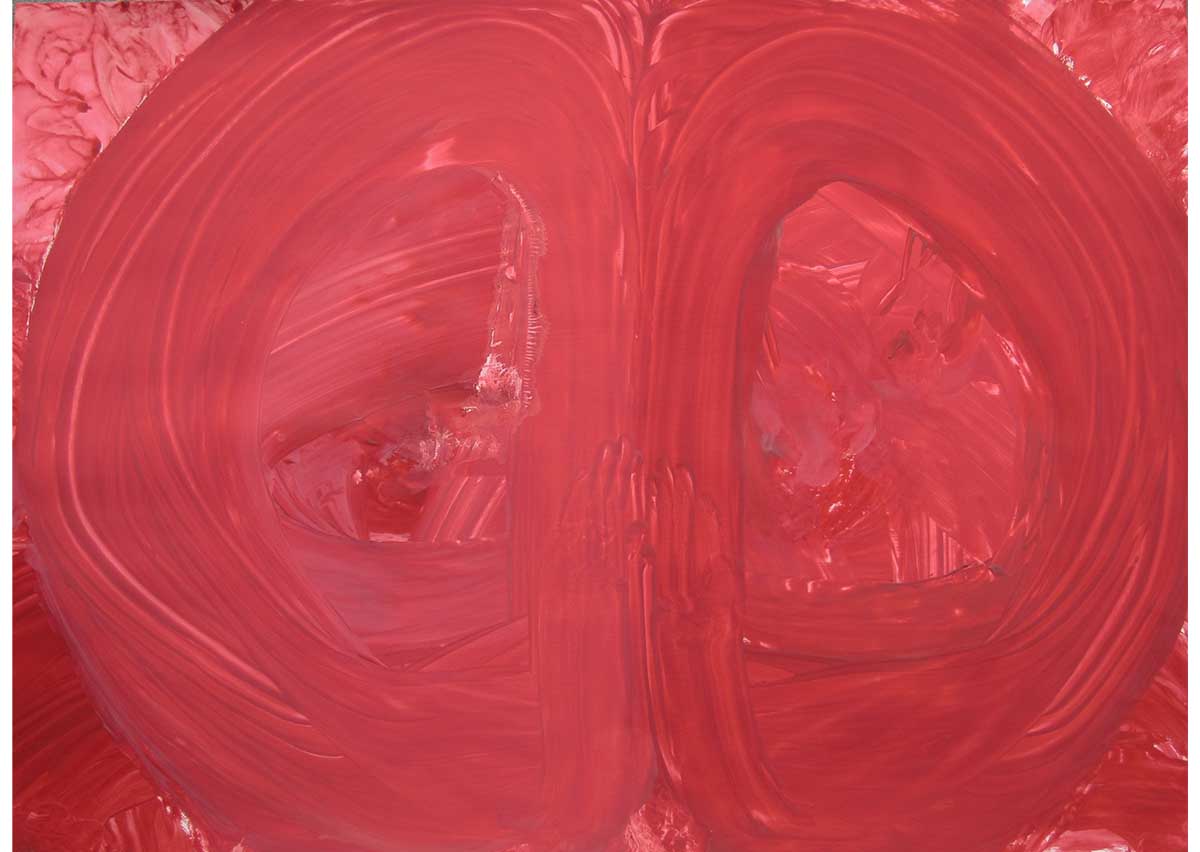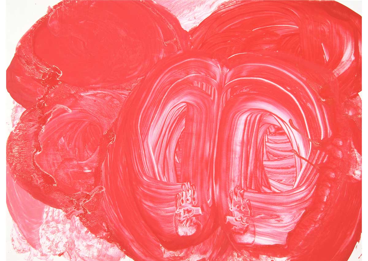 赤い色を好んで使い、生命を感じる力強い画面が生まれる。