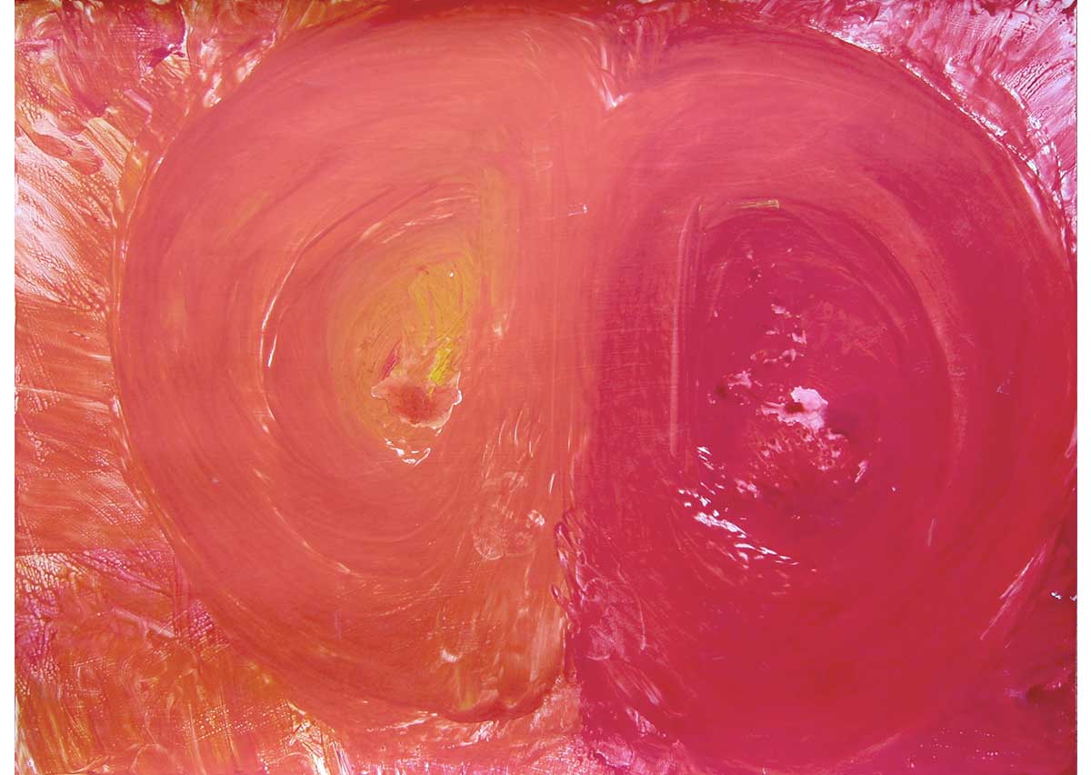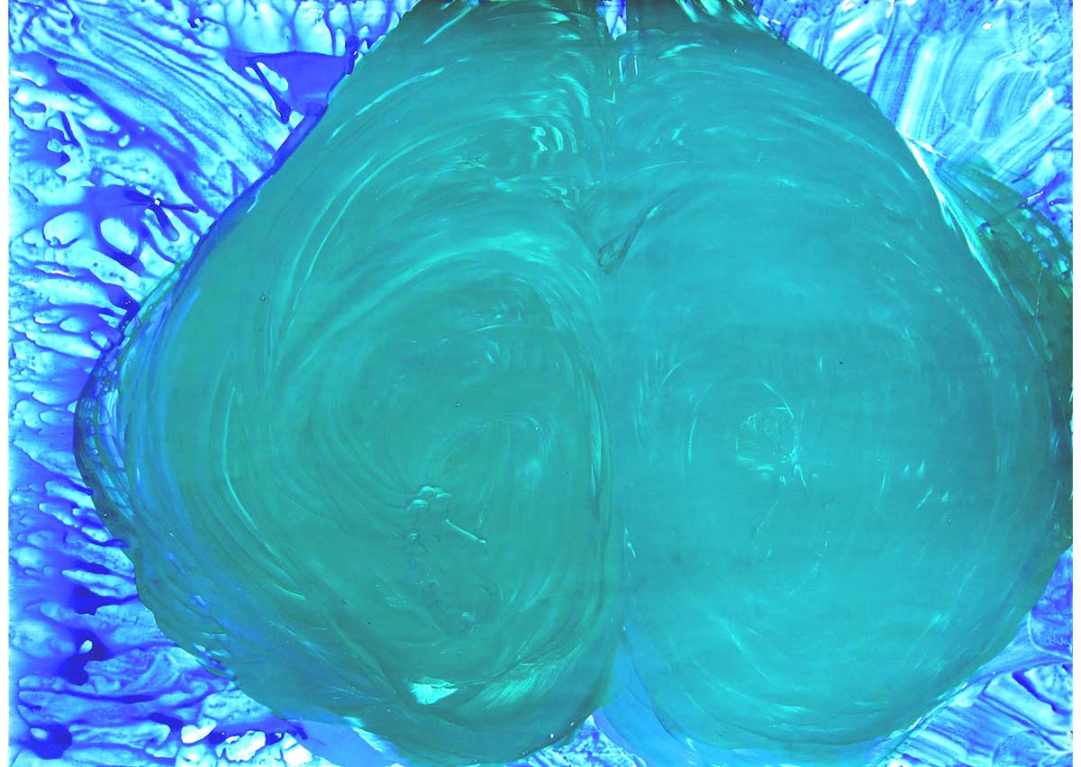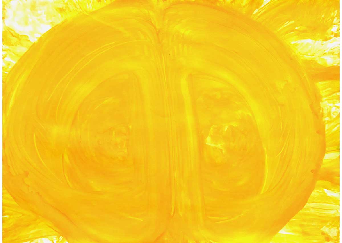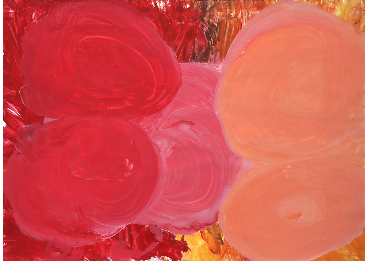そんな佑理子さんも絵を描くことが好き。「ぐーるぐーる」と口ずさみながら、大きな紙に絵の具を手のひらでのばして描いていく。