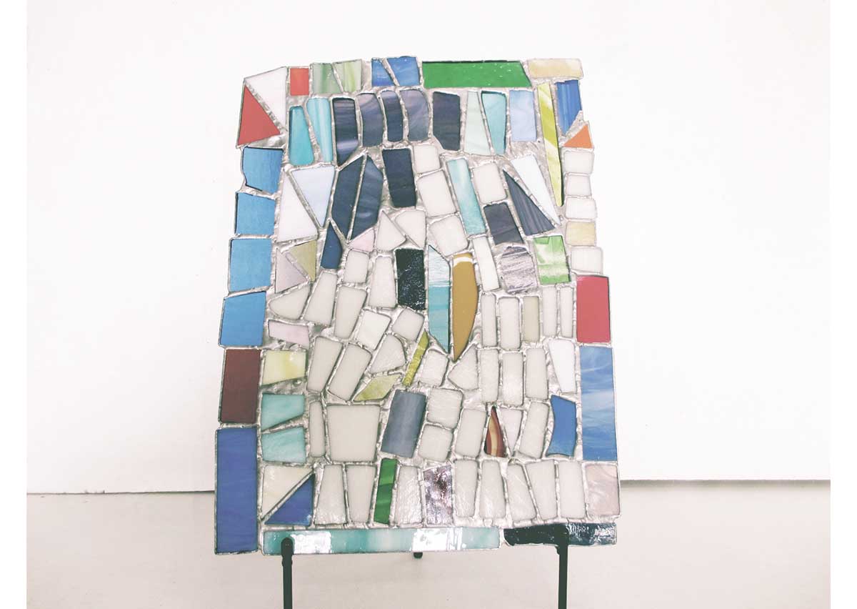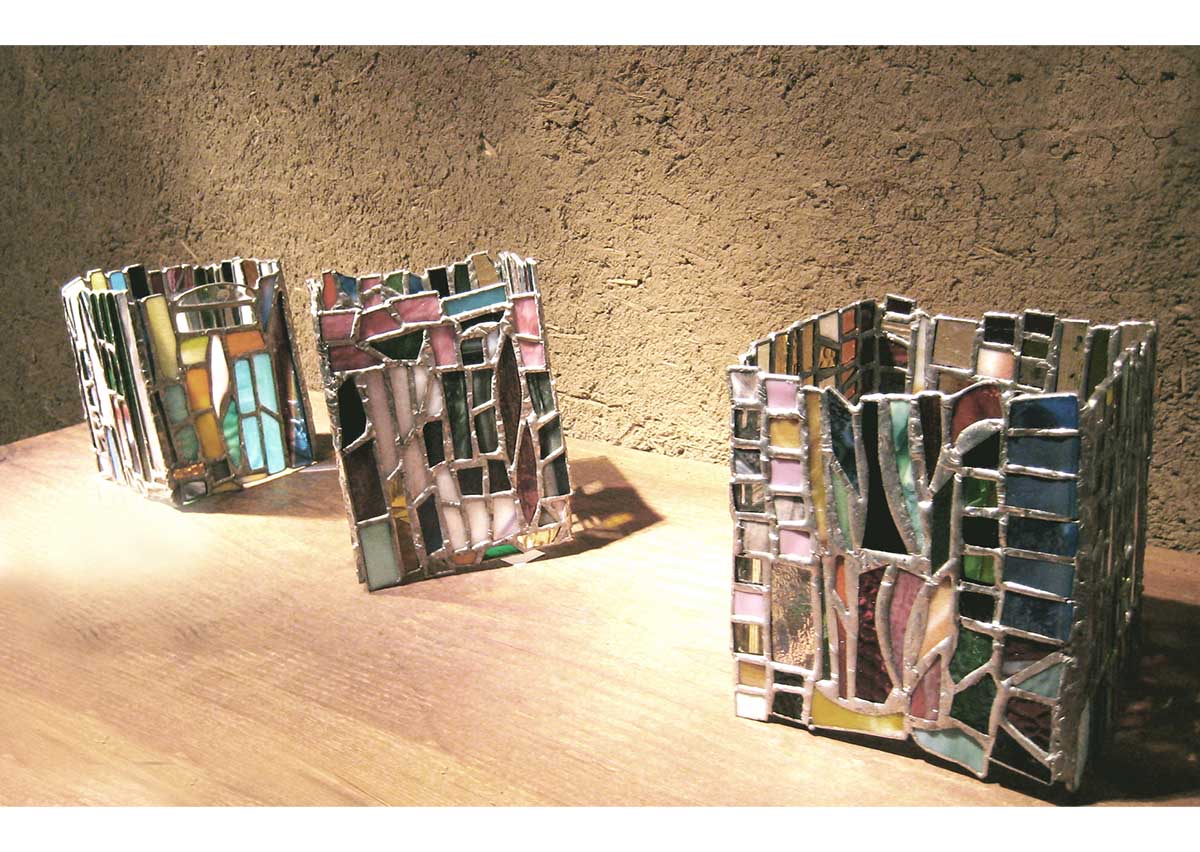 まるでパズルのようにガラスとガラスを組み合わせて作品を作っていく。