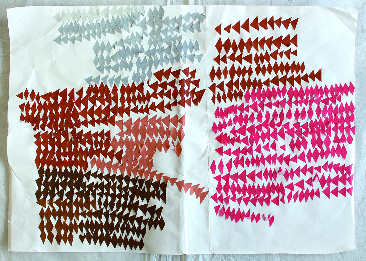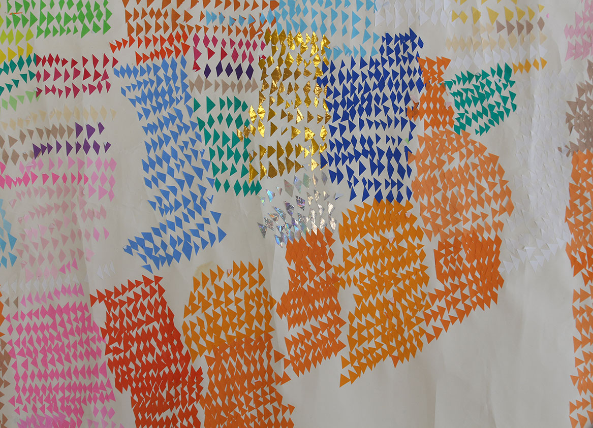 その時の気分の折り紙を選び、オレンジ色の日や、ピンク色の日、時々暗い色を選ぶ時も。