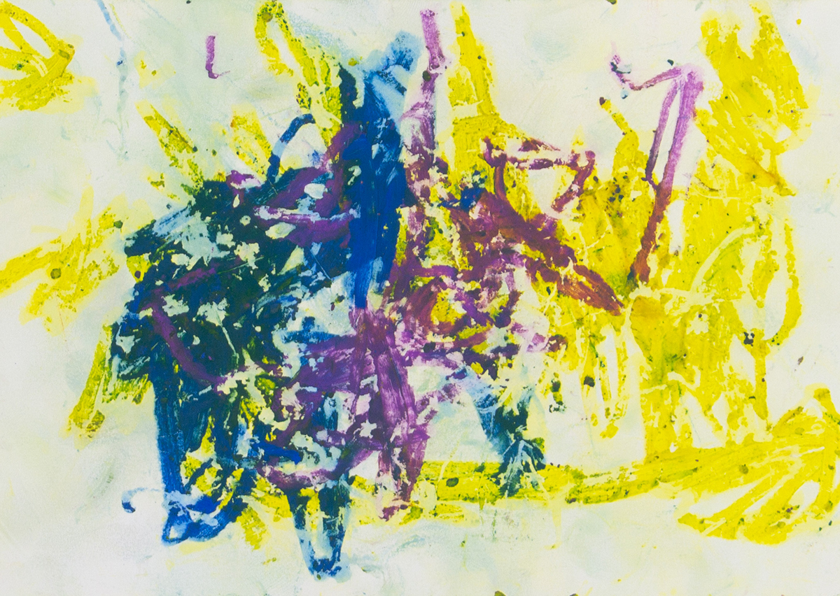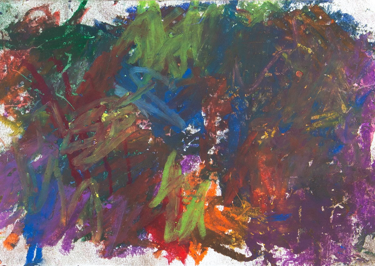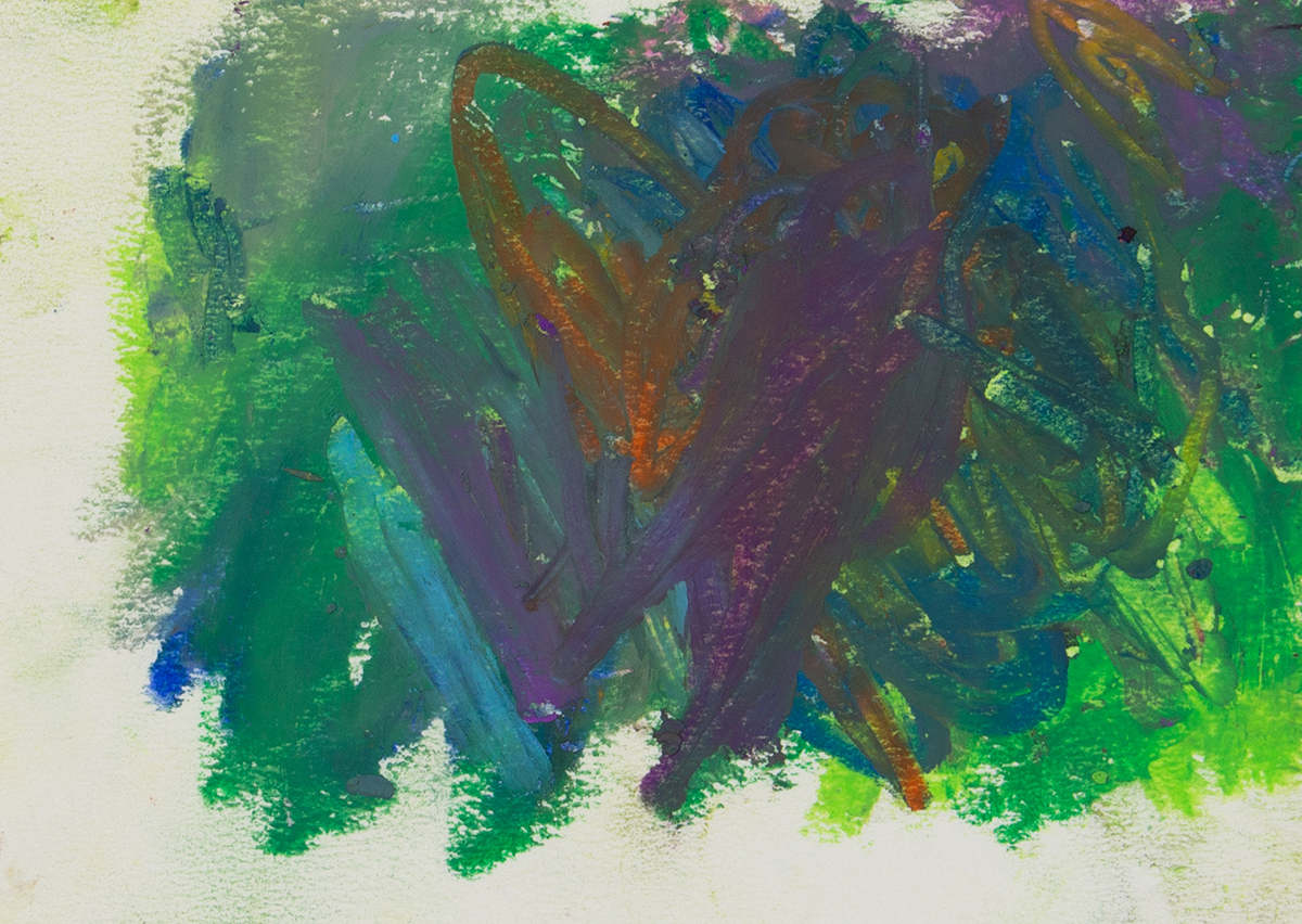 絵を描く事が大好きな萌香さんはクレヨンを使い、力強いタッチで画用紙に描いている。 ポストカードサイズの小さな画面には「おはな」「うみ」「ちょうちょ」「くじらさん」と次々に思い浮かぶ風景や形を描いていく。 そこには萌香さんの世界が幾度にも重なり新しい形が生み出されていく。