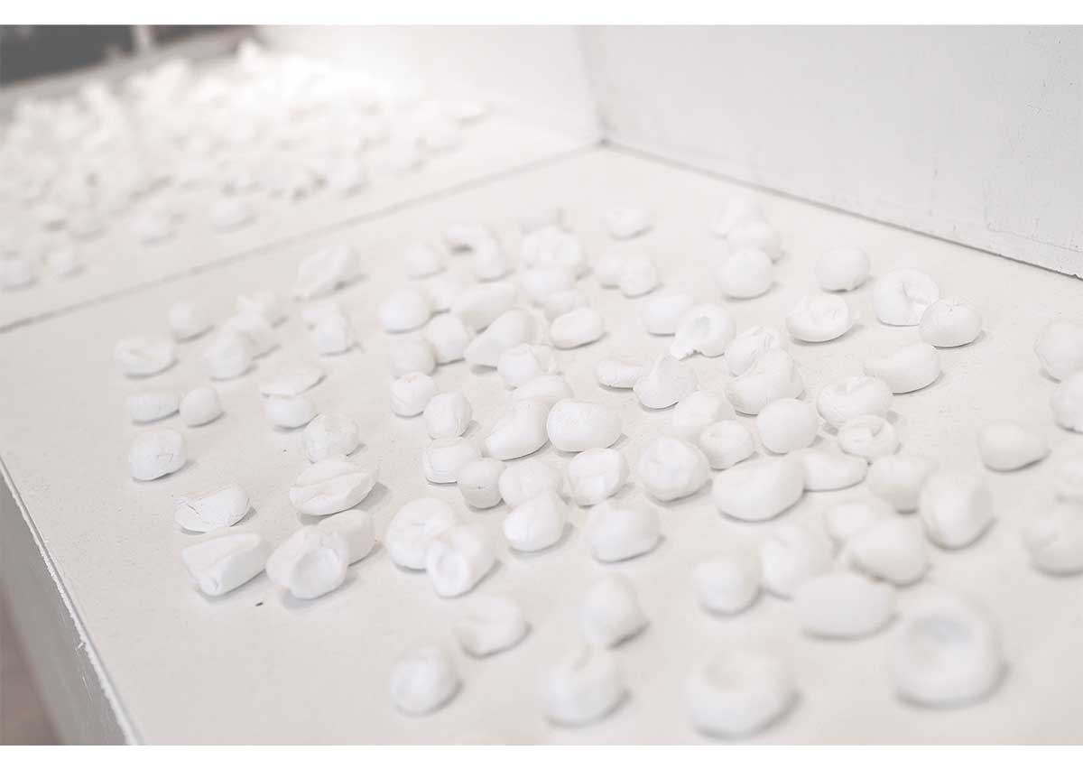 絵本が大好きで、特にノンタンがお気に入り。 彼の笑顔は周囲を明るくさせる。 仕事をしている姿をみんなに見てもらいたくて、ドヤ顔で”見て見て”とアピール。 テーブルの上に置いた紙粘土を、親指と人差し指で摘んで高々と持ち上げる。 摘んだ時に爪の跡がつき、石井さんならではの「ニギリ」が完成。展覧会などでも好評。
