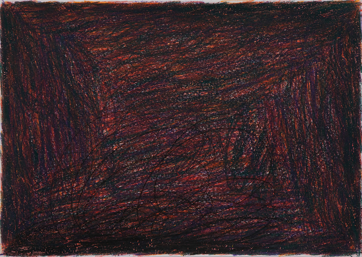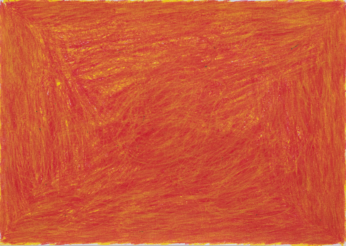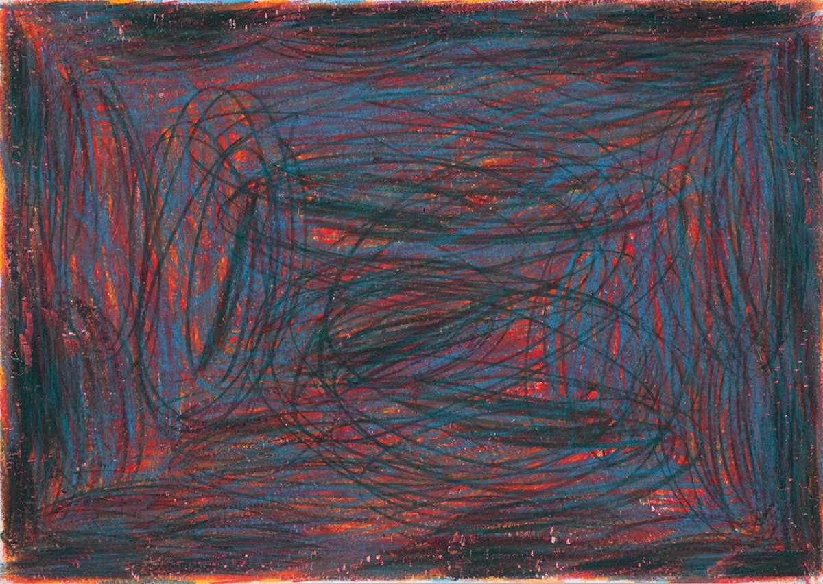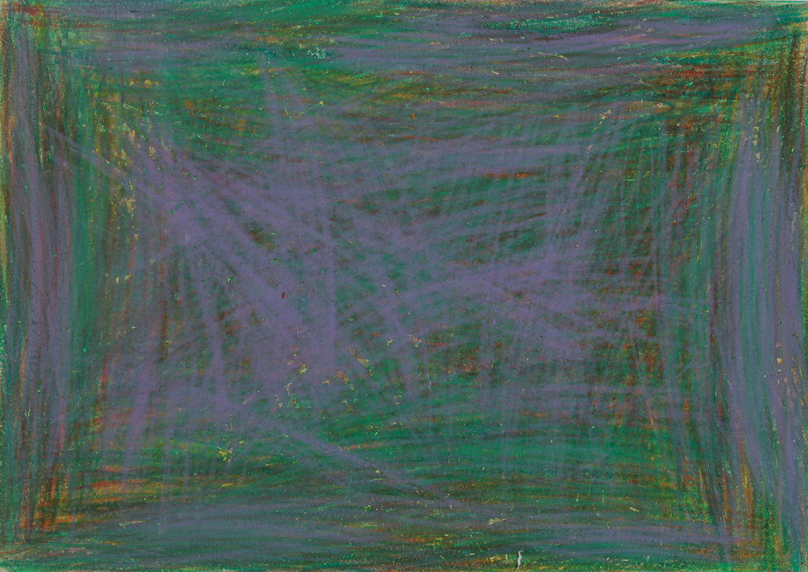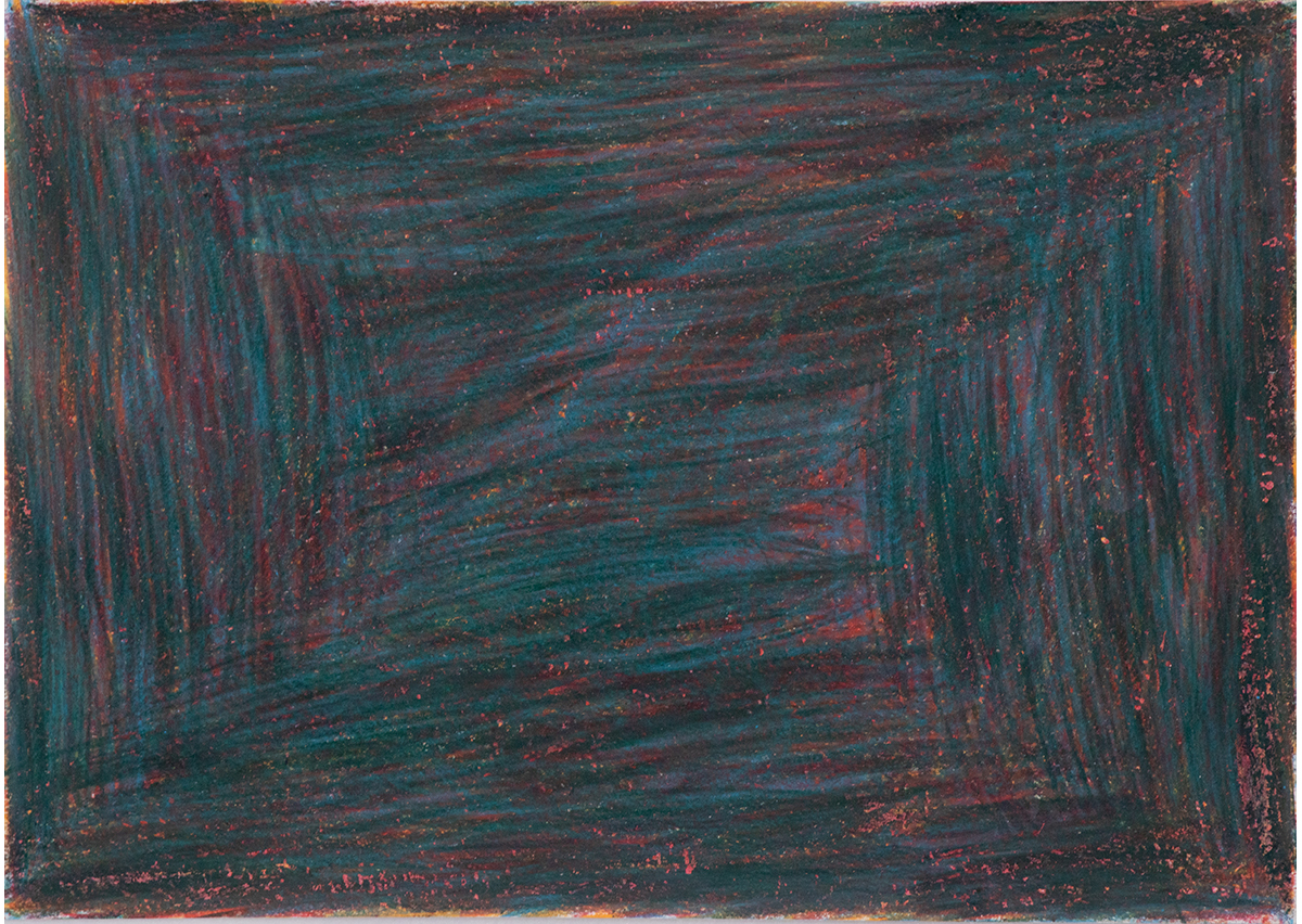 絵の表情からは想像できないほど、本人はいたってマイペース。 毎日いすに座ってのんびり過ごしている。 月に数回、絵の時間。クレヨンやクーピーを持つとその手をすばやく動かして色を重ねていく。 手が動き出したら止まらない。1、2時間であっという間に1枚の紙を塗りつぶしたら、 いつものおだやかな表情の中に、少しだけ満足そうな気持ちが見えてくる。