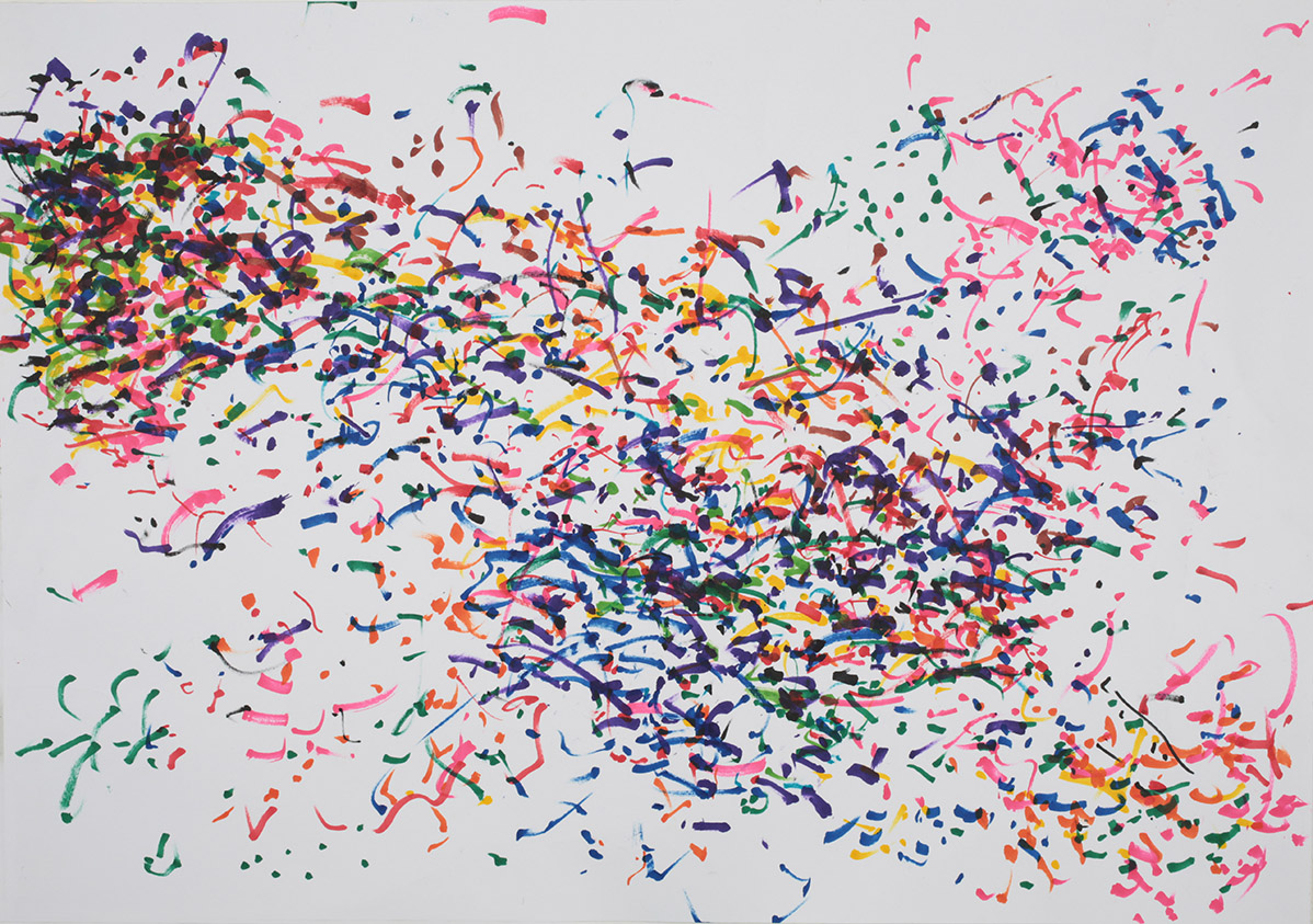 今では「見て!見て!」と周りにアピールするように声をあげながら、マジックでカラフルな点をたくさん打っていく。
