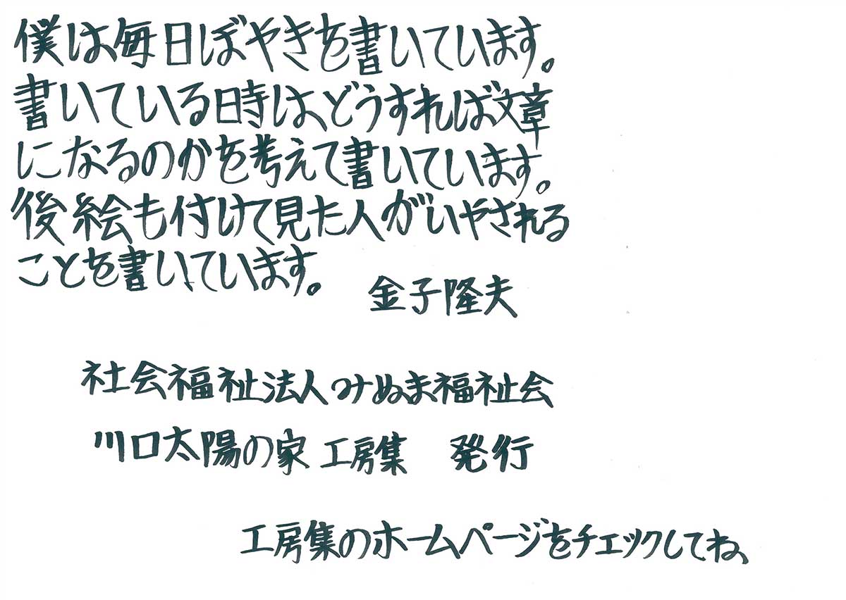 その感じている思いを言葉にしてもらい、「生きるための名言集」が生まれた。人間観察が趣味というのもうなずける。