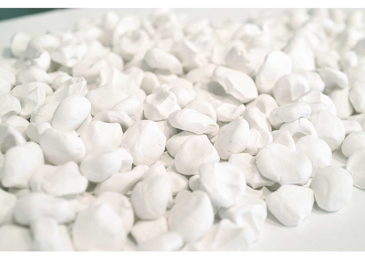 職員の声掛けにタイミングを合わせ、ゆっくり粘土を握ると、驚くほど毎回違う形の「ニギリ」が出来上がる。