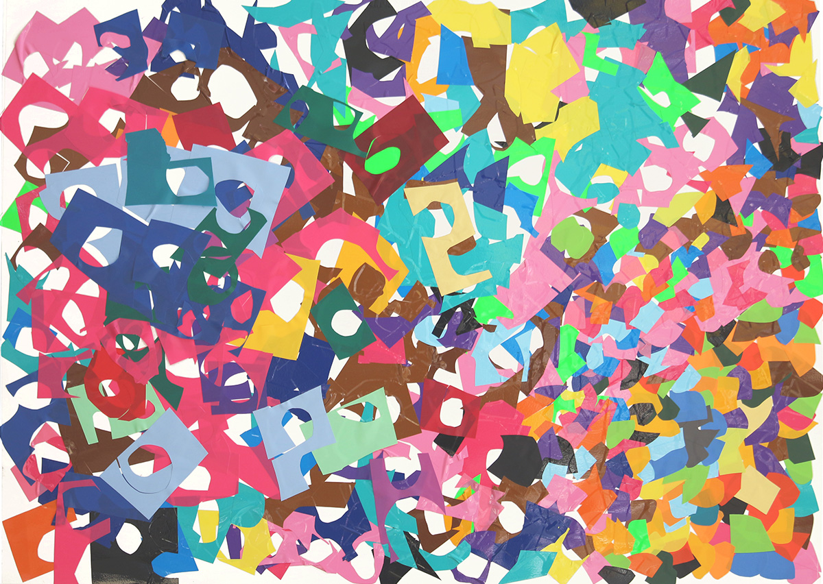 カッティングシートが幾重にも重なると立体的で、黒川さんの世界が広がっていく。