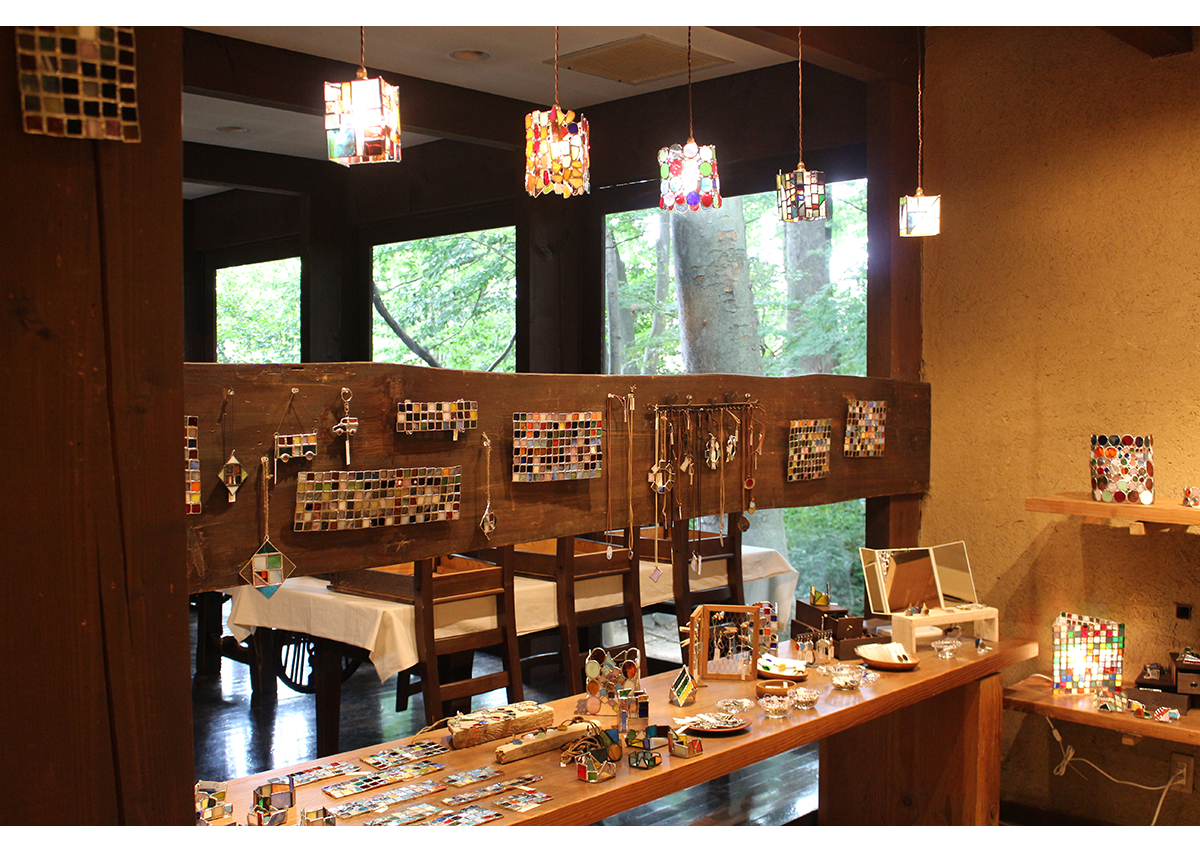 ステンドグラスのランプシェードや小物、ガラスコインのコラボレーション商品に加え、