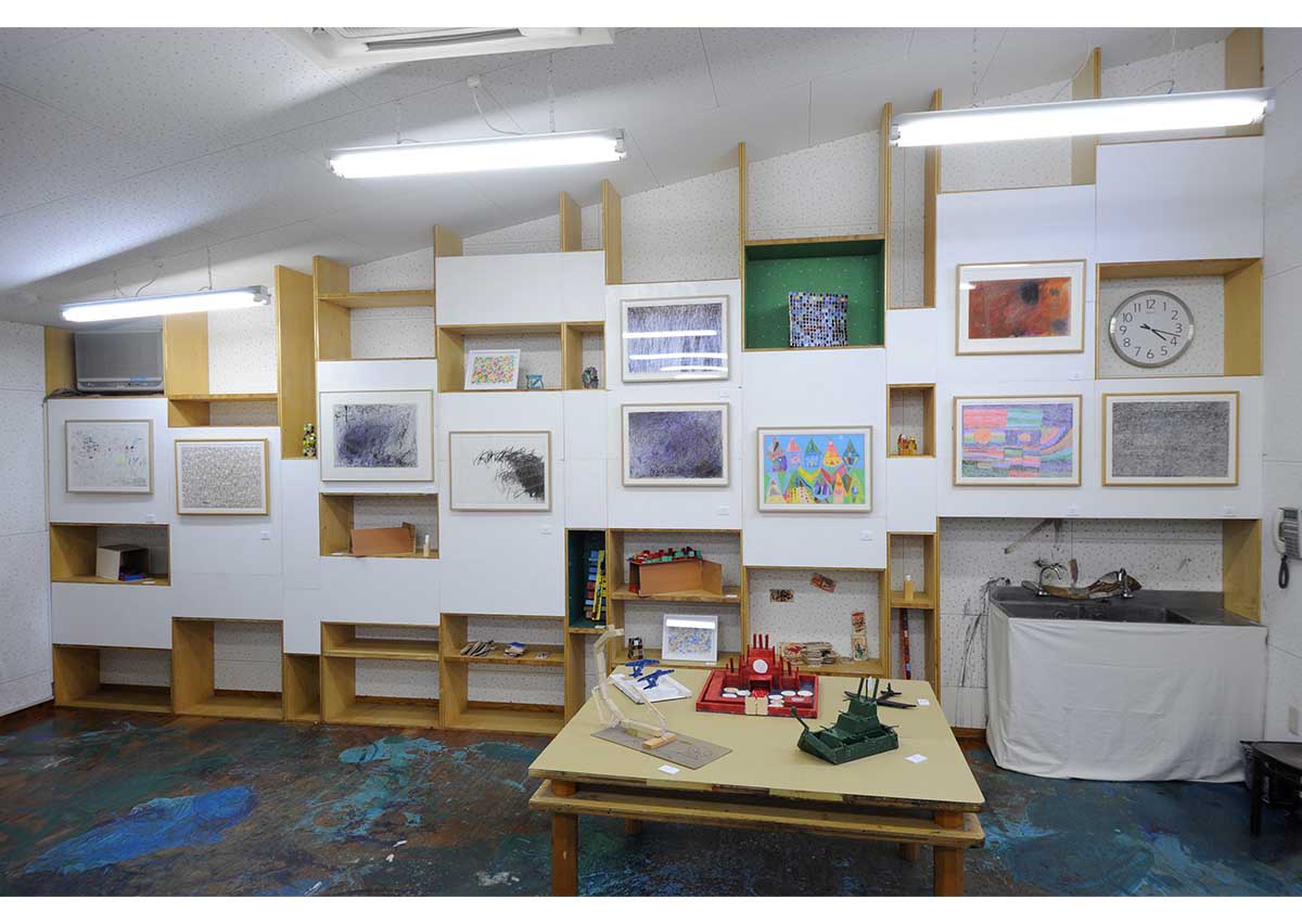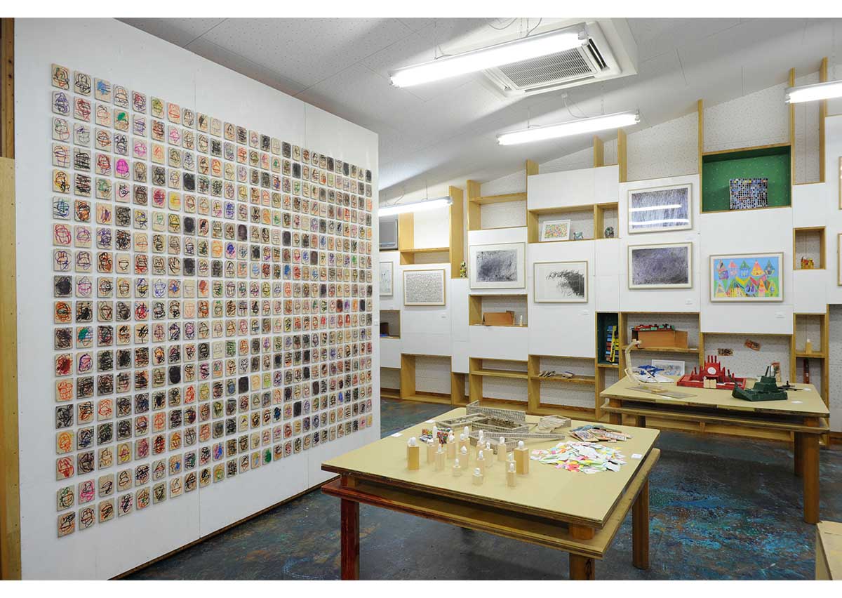 絵画・ドローイング・立体・木工・写真・書など、200点以上の作品を工房集全体に展示。