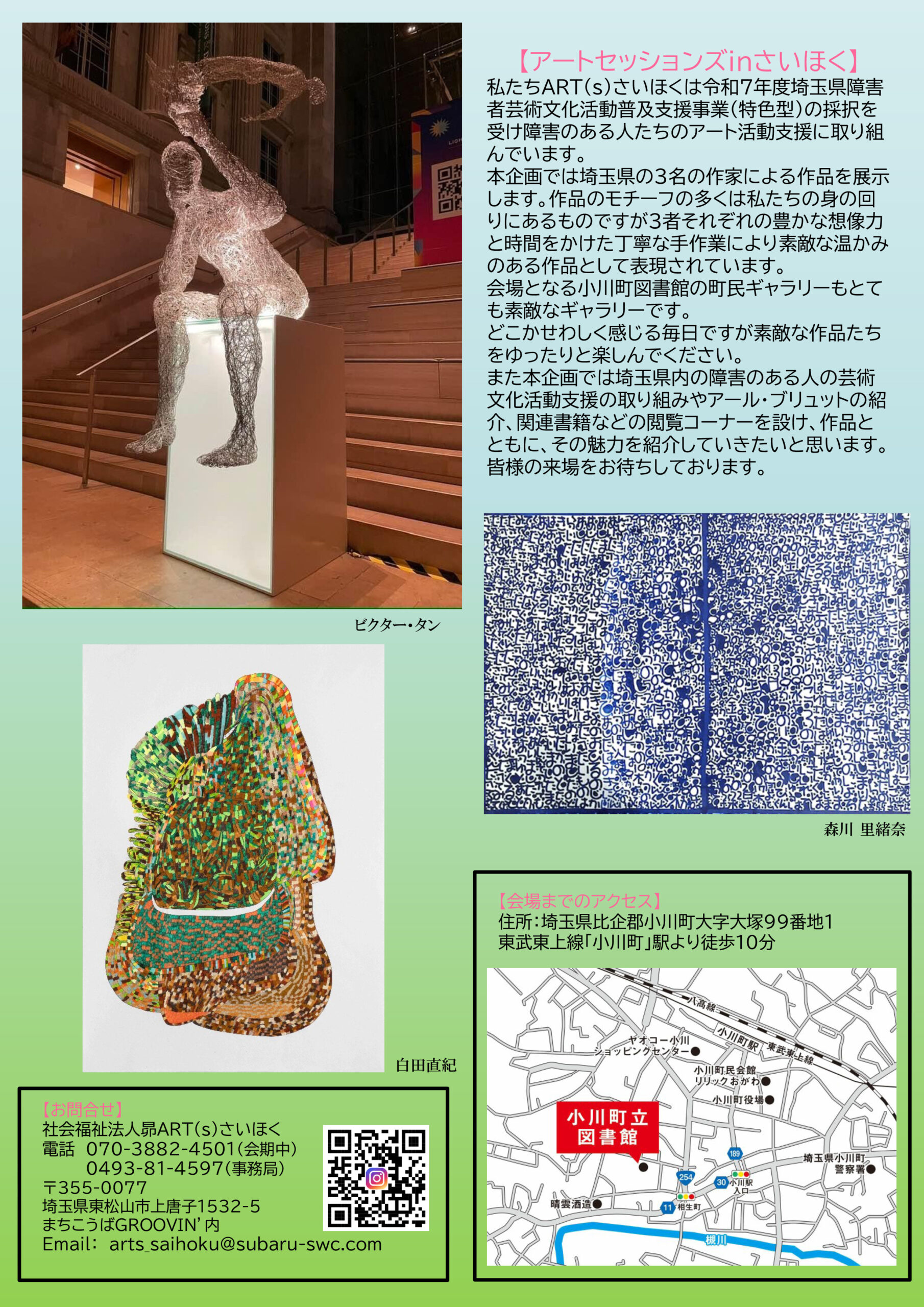 埼玉県の3名の作家「白田直紀」「ビクター・タン」「森川里緒奈」による作品を展示します。
