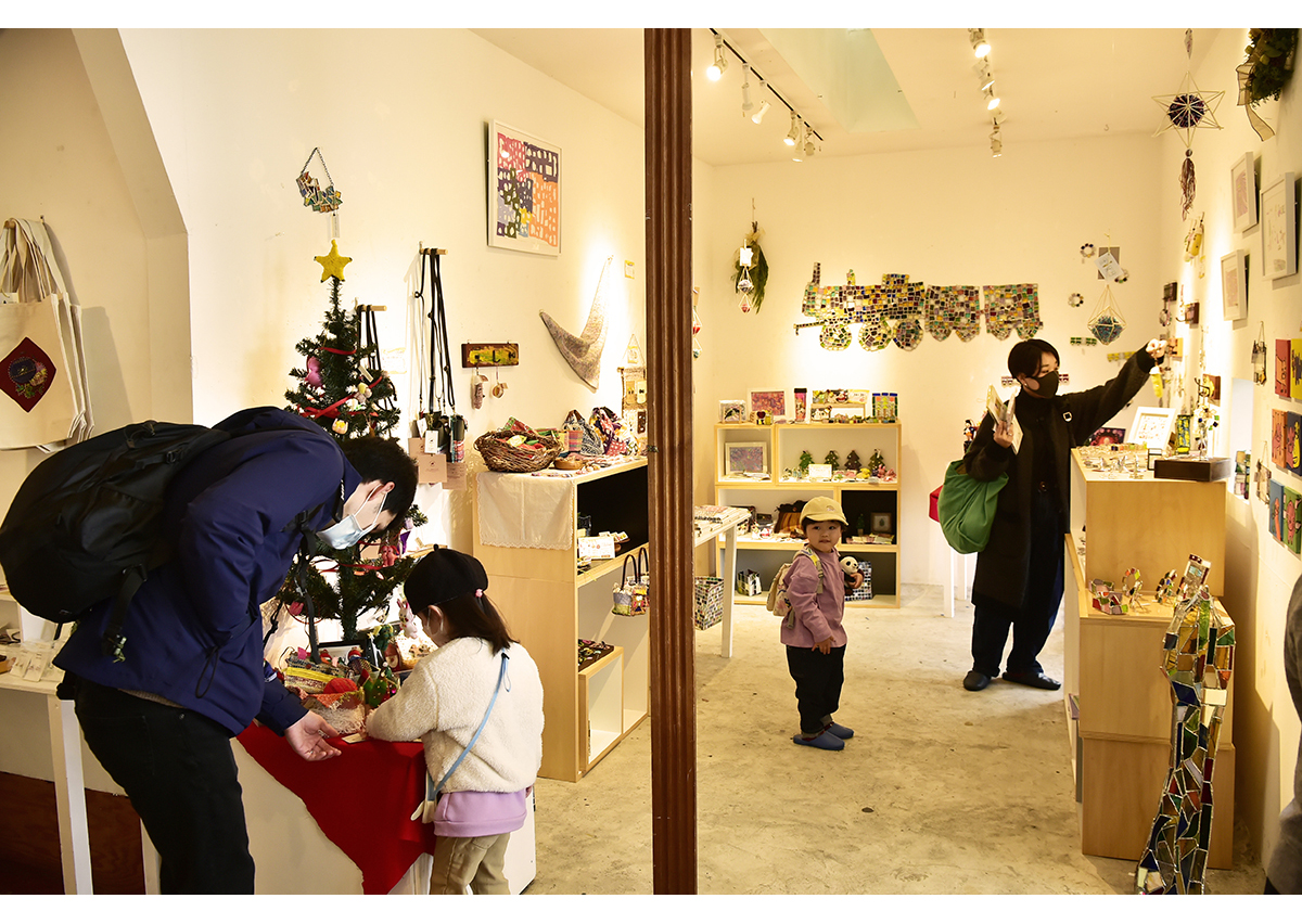埼玉県内の福祉施設からセレクトした、クリスマスを楽しむアートグッズや織り製品が集まりました。
