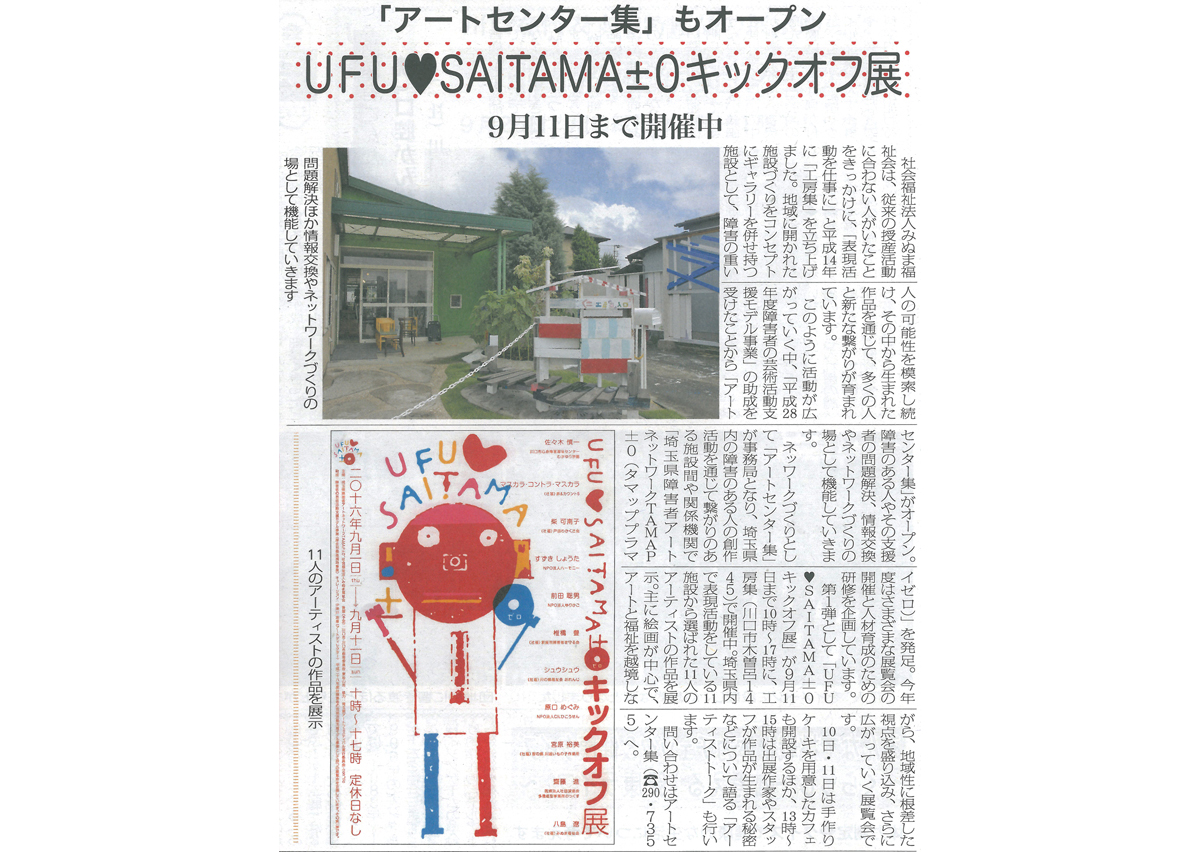 アートセンター集、UFU♥SAITAMA±〇キックオフ展について紹介されました。