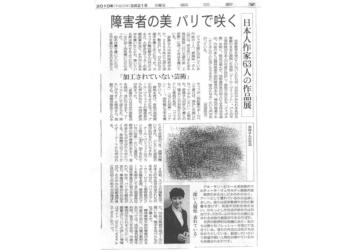 「アール・ブリュット・ジャポネ展」出展の齋藤裕一さんが紹介されました。