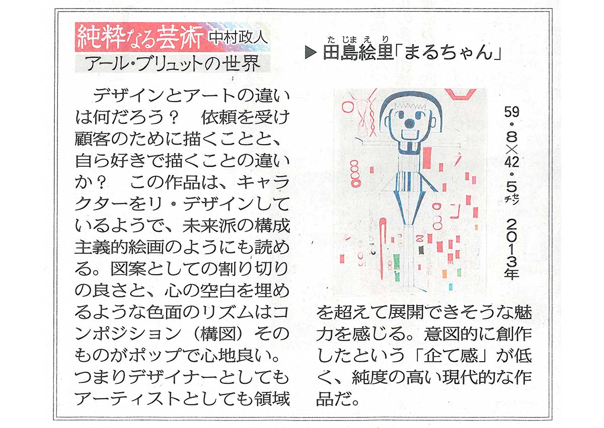 「純粋なる芸術 アール・ブリュットの世界」で田島絵里さんが紹介されました。