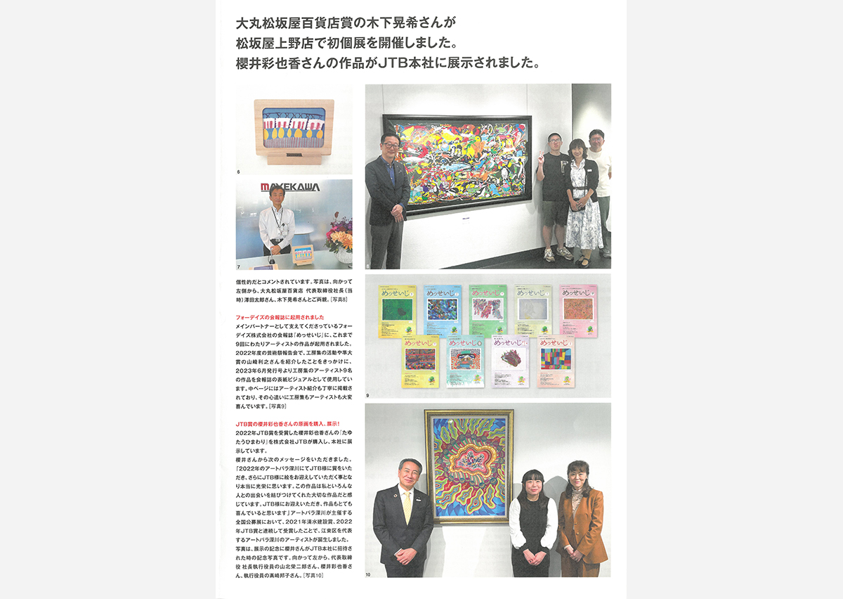 また、アートパラがきっかけで企業と繋がり、野口敏久さんの作品がクラフトジンのラベルになり、工房集の作家たちの作品が広報誌の表紙に使用されました。