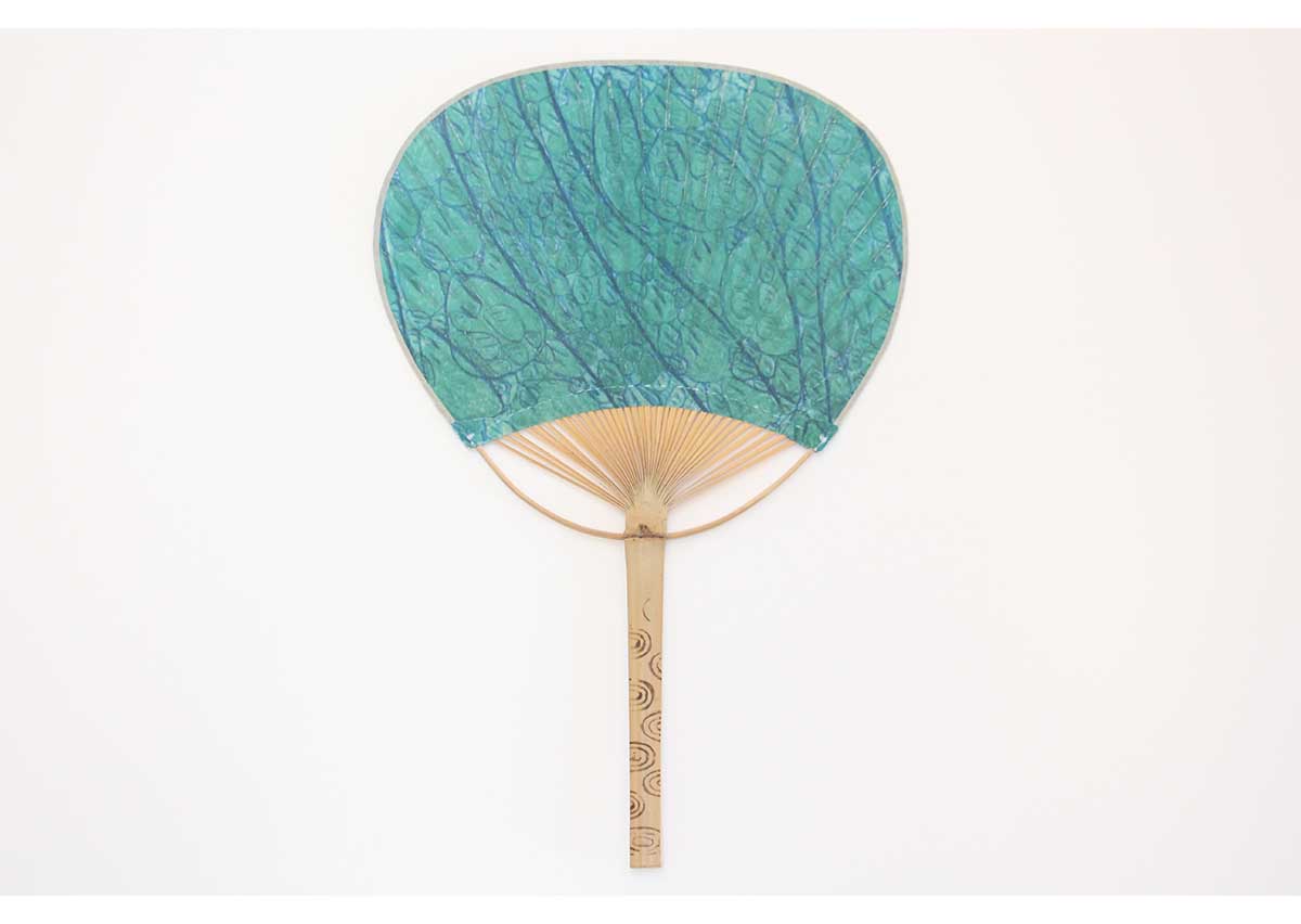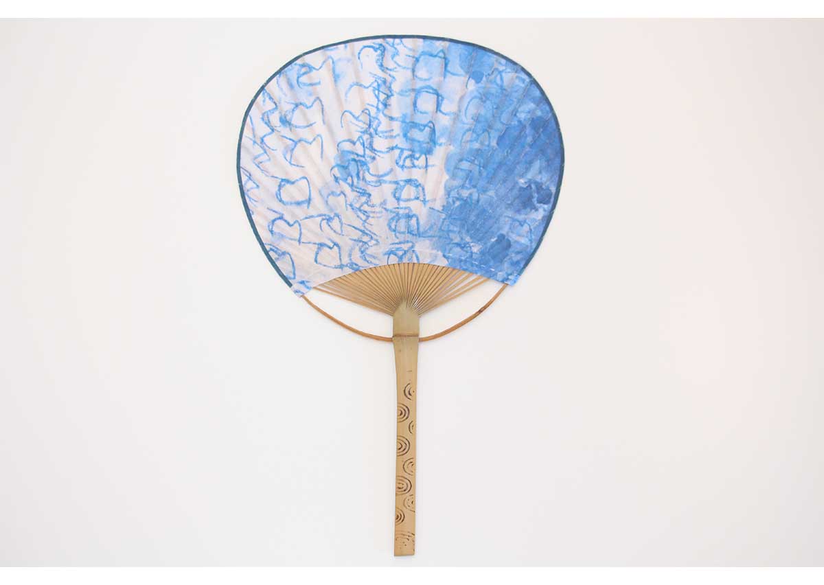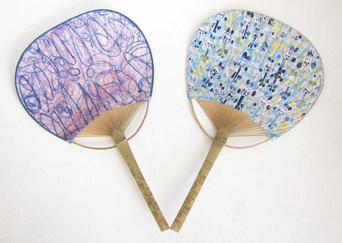 「うちわ工房しまの」(越生町越生)のによって田中悠紀さん、柴田鋭一さんの作品が