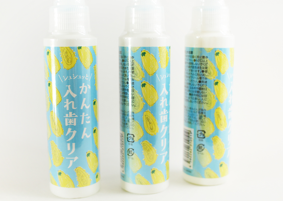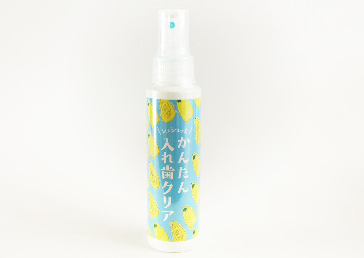 コープで販売されている入れ歯洗浄スプレーに大倉史子さんの描きおろし作品が使用されました。