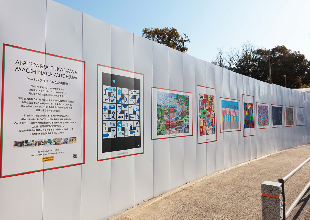 アートパラ深川による「街なか美術館」として、 富岡八幡宮の改修工事の仮囲いに作品が掲載されました。 アートパラ深川大賞の公募展での受賞作品として、 2名の作品が展示されました。 (画像はアートパラ深川ウェブサイトより)